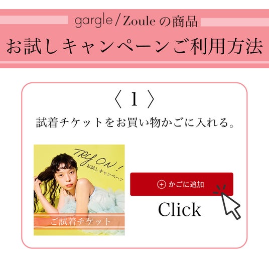気になる商品(最大3点まで)と一緒に「試着チケット」をご購入ください