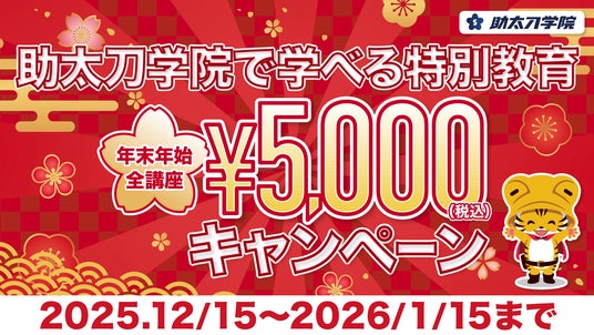 22万超の登録事業者数を誇る、国内最大級の建設人材マッチングプラットフォームを運営する株式会社助太刀(以下「当社」)は、建設オンデマンド教育サービスの「助太刀学院」にて、業界最安値水準(※1)の割引価格で受講可能な特別教育を期間限定でさらに値下げし、全ての講座が1講座 税込5,000円(※2)で受講できる「年末年始特別キャンペーン」を2025年12月15日~2026年1月15日に開始いたします。