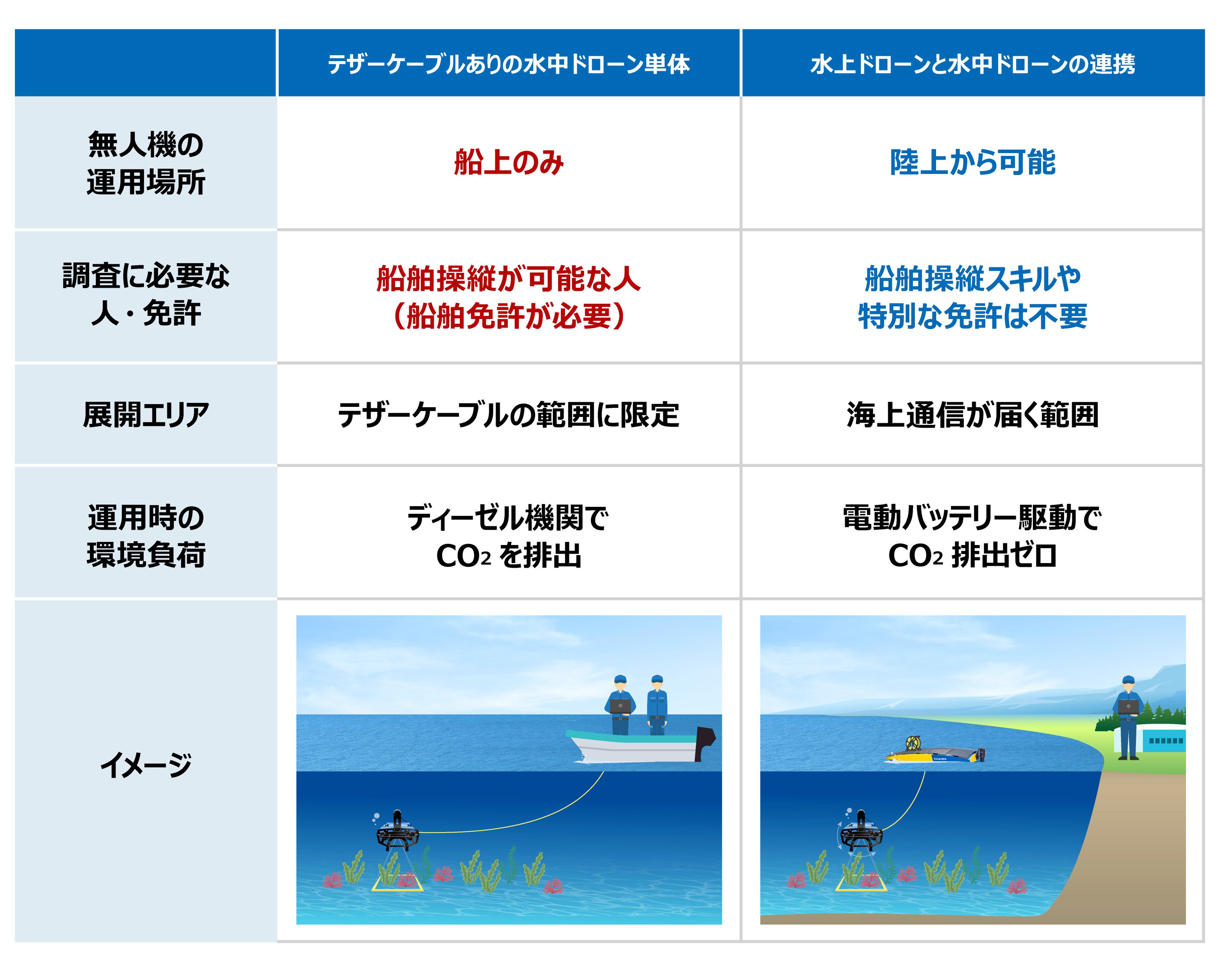 さらなる効率化に向け、水上・水中ドローンの連携技術を実証