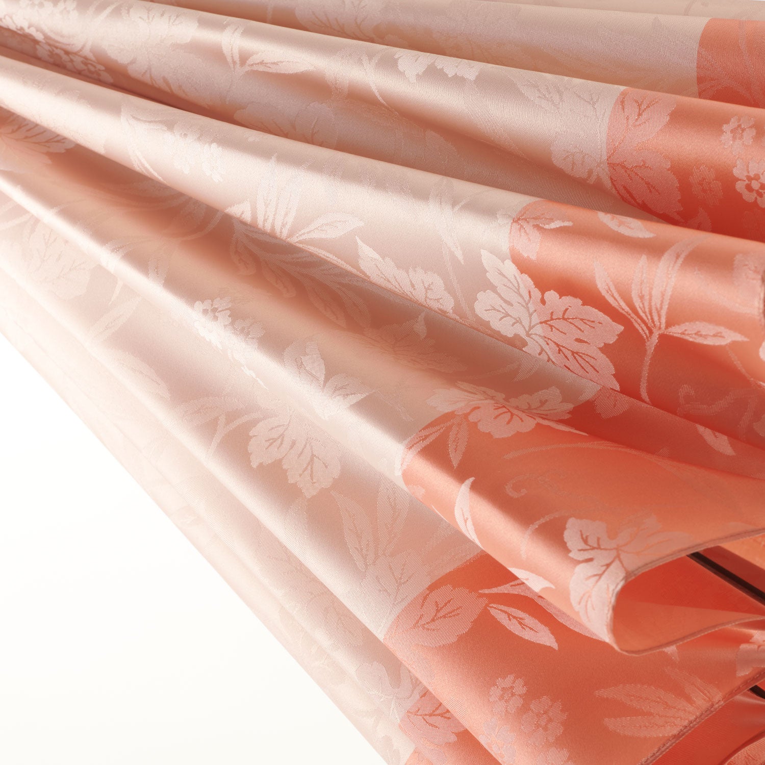 大振りな柄行きのデザインは8本骨仕様で仕立てると一つ一つのモチーフが引き立ちます。アルミの中棒で軽量仕様、細身のシルエットが瀟洒な魅力を演出してくれます。