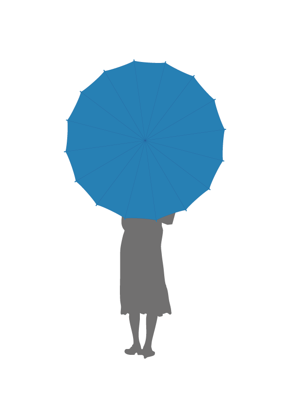 通常60センチ仕様のところ、一回り大きく軽い骨組みで仕立てました。大判・軽量でありつつも16本骨傘をお楽しみいただけます。