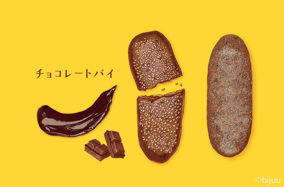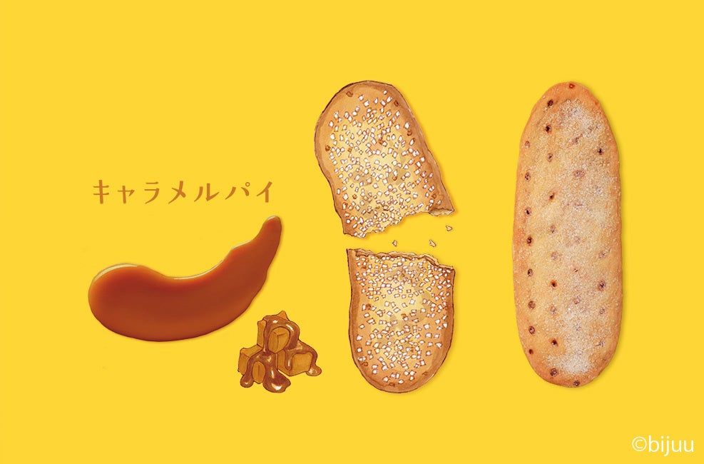 さくさくの食感に香ばしく焼き上げたパイ。手描きのイラストでその美味しさを表現