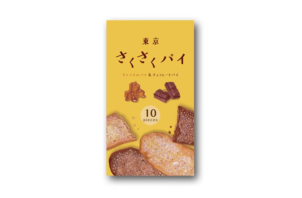キャラメル味とチョコレート味の2種類がアソートされていること、一箱あたりの入り数など、東京さくさくパイの魅力が一目ででわかるデザインとなっています。