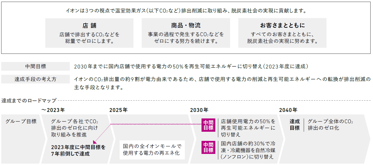 2023年に「イオン脱炭素ビジョン」で掲げた中間目標を7年前倒しで達成