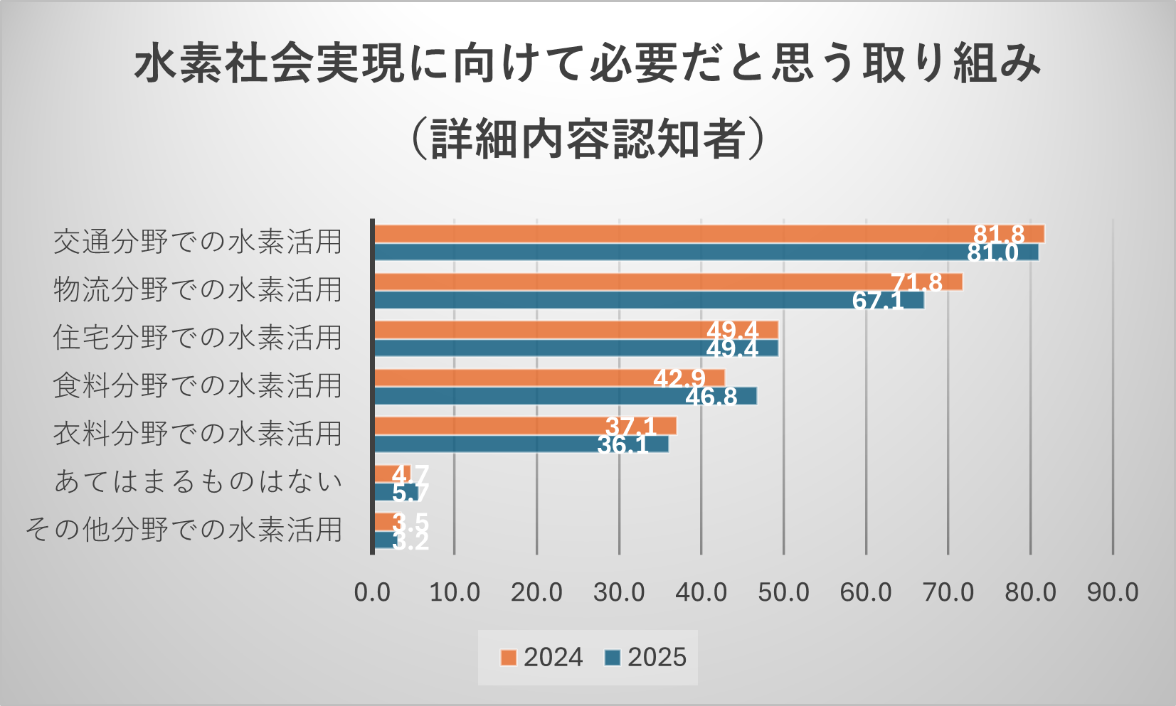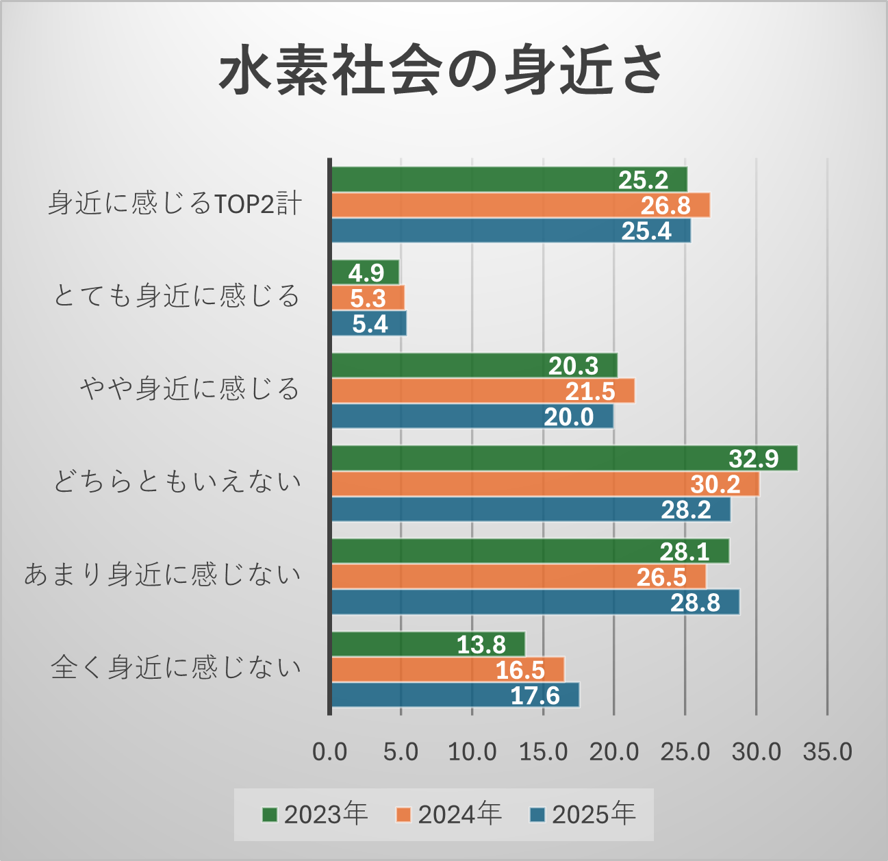 「水素社会」の認知は昨年比2.9%減の26%と低調、身近に感じる人は3年連続3割以下