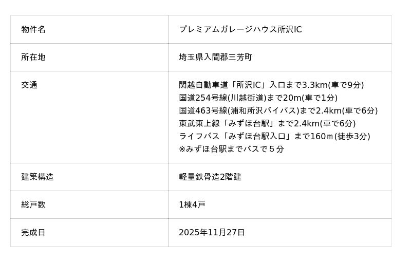 ■プレミアムガレージハウス所沢ICについて