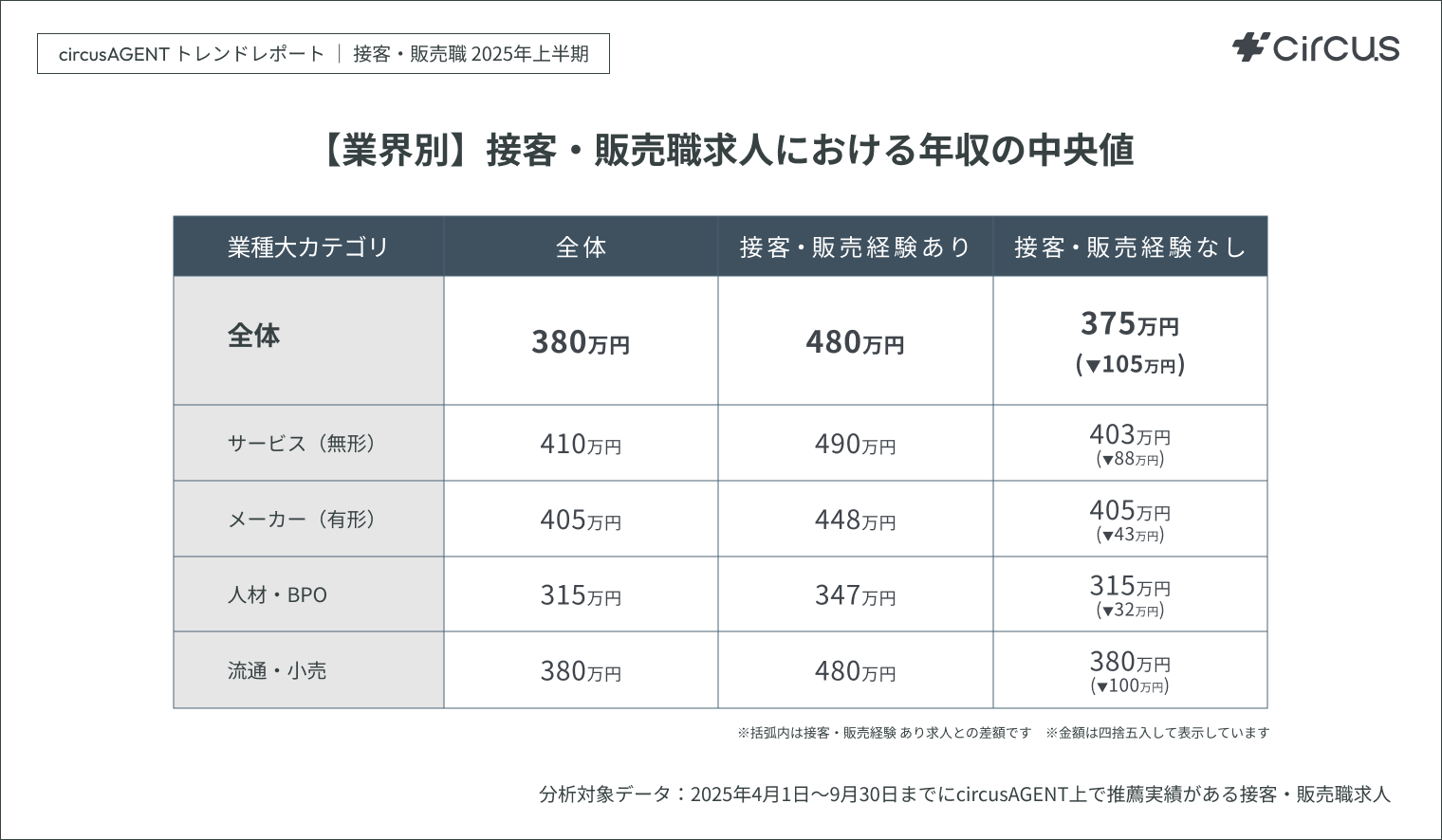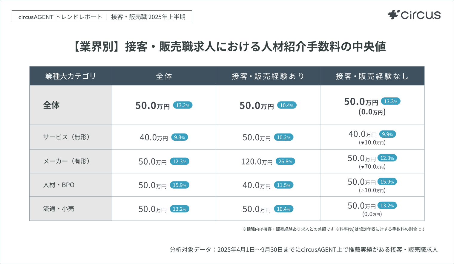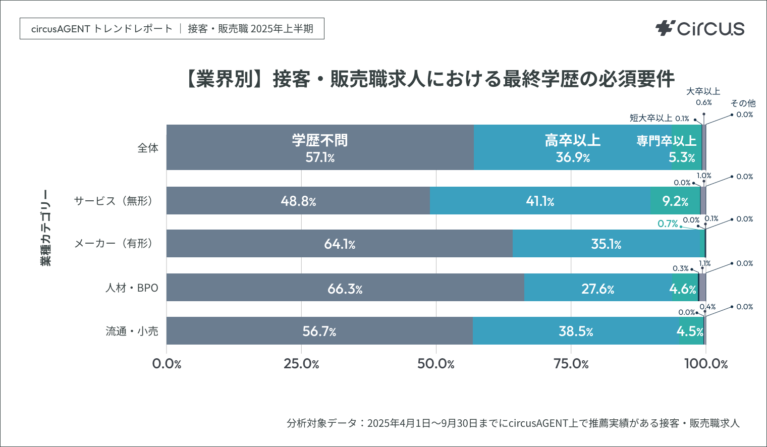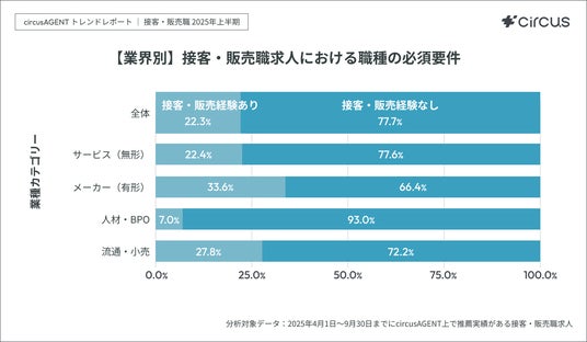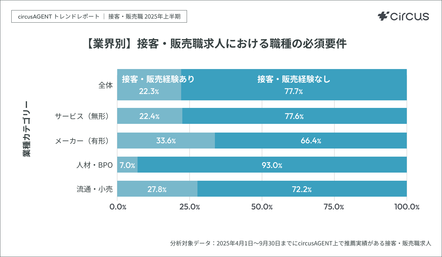 分析対象 circusAGENT上で2025年4月1日~9月30日の期間内に推薦実績がある接客・販売職求人