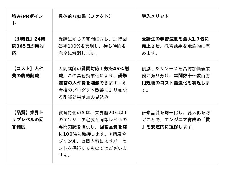 ~「講師不足」による学習遅延とコスト増を解決。即時回答率100%、研修コスト最大80%削減を実現~