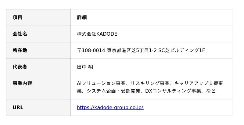 株式会社KADODE(本社:東京都港区、代表取締役:田中 翔)は、深刻化する研修現場の課題を解決し、質の高いエンジニア育成を加速させる教育特化型AIサービス「KADODE 講師AI」を本日より正式に提供開始します。