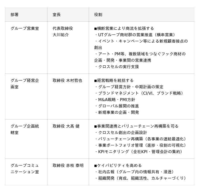 体制移行に合わせ、以下の組織を新設・再編します。取締役がグループ横断の機能を直接管掌することで、事業間連携および意思決定のスピードを高めます。