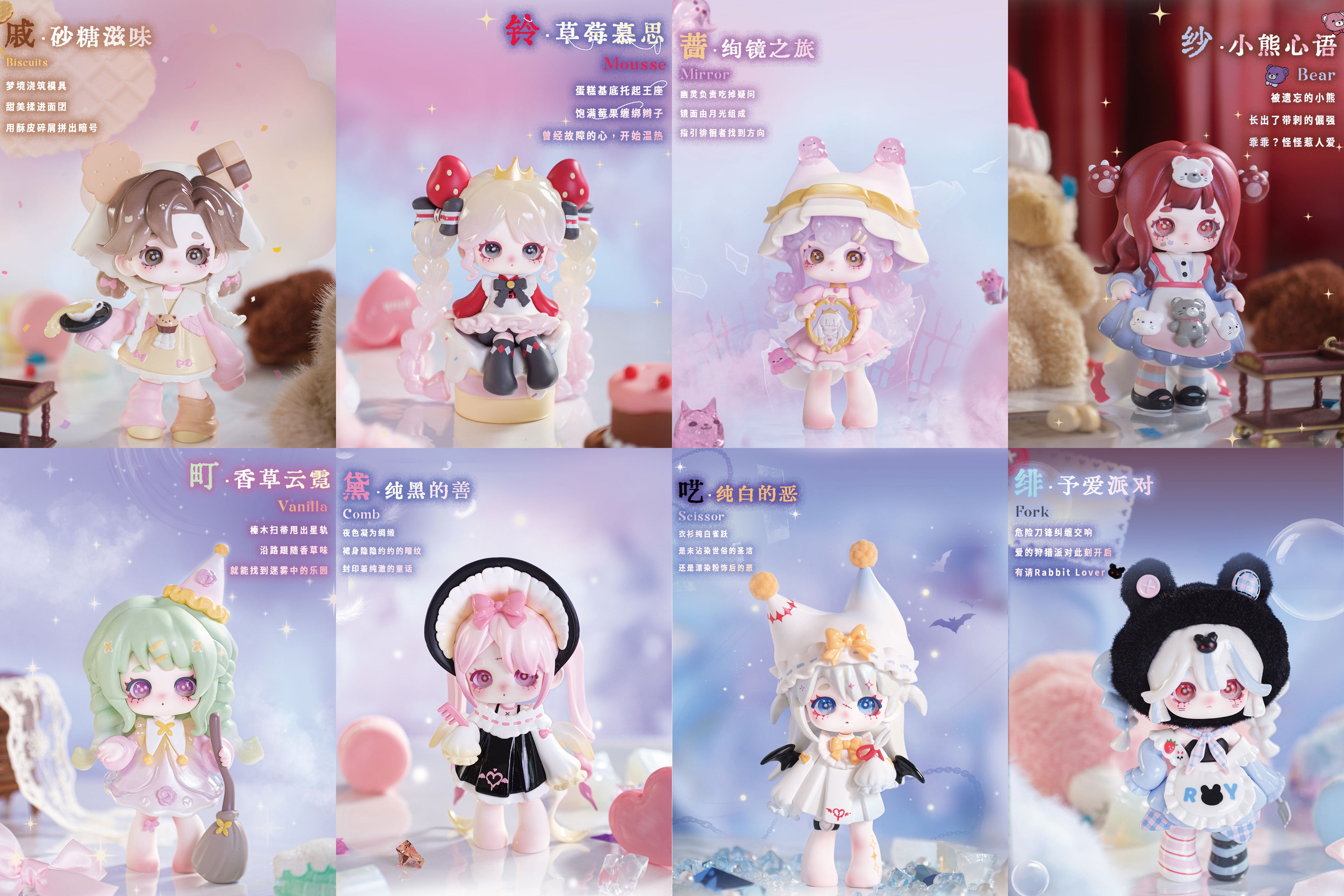 ●Scissor ●Comb ●Bear ●Mirror ●Vanilla ●Biscuits ●Mousse ●Fork ●Mushroom※シークレット