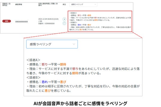 本アップデートにより、テキスト化された文字情報だけでは読み取れなかった声のトーンや抑揚、間といった「非言語情報」による感情分析が可能となり、相手の温度感を把握することで、顧客対応のさらなる品質向上や従業員満足度(ES)向上を支援します。