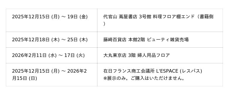 TAHITI CANDLES では、店頭・オンライン双方でのプロモーションを強化いたします。下記期間・会場にて、期間限定の展示・販売イベントを実施します。