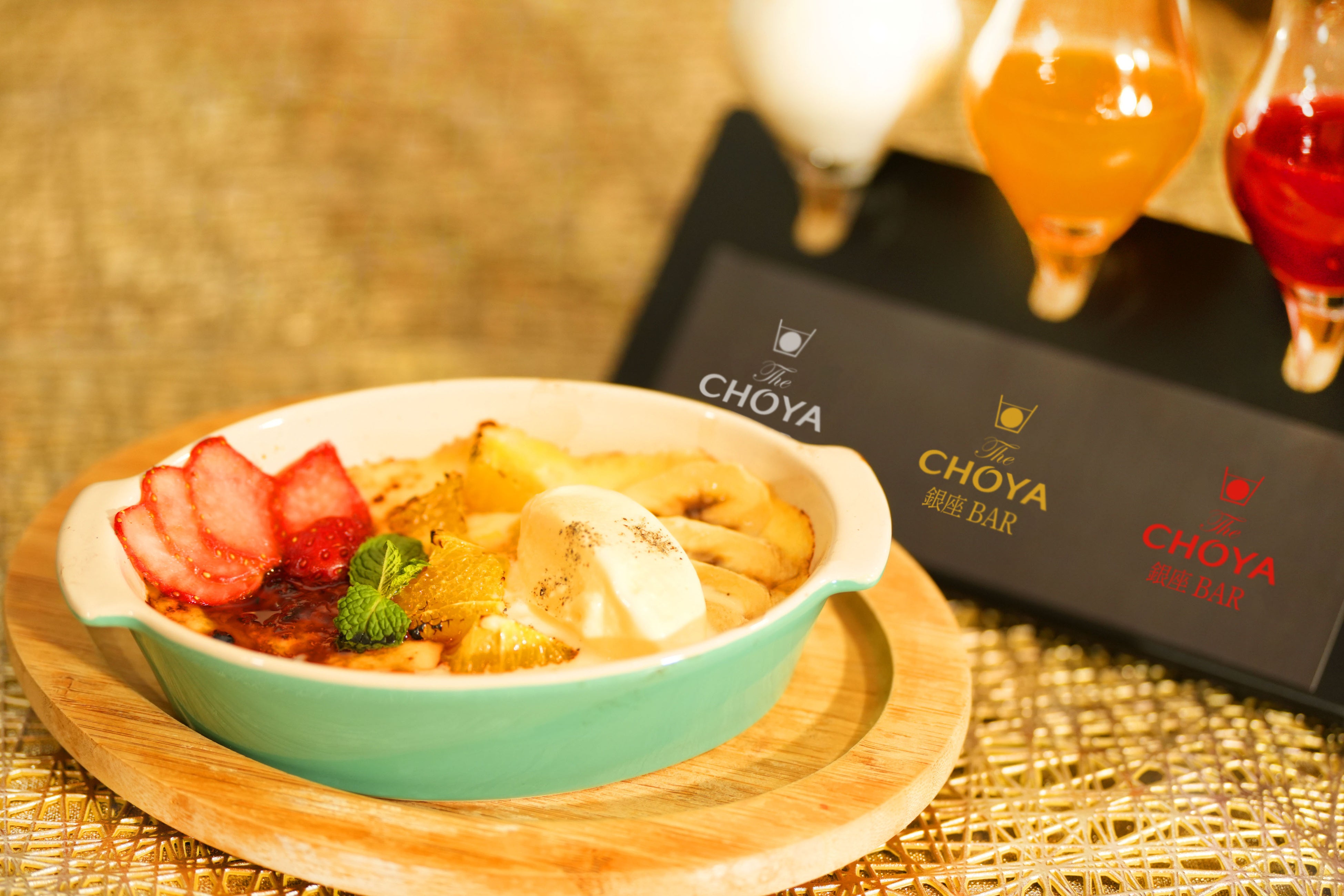 梅酒カクテル専門店「The CHOYA(ザ チョーヤ)銀座BAR」贅沢フルーツとたっぷりカスタードのブリュレに南高梅シロップ3種「CHOYA とろける梅フルーツグラタン」を新発売!