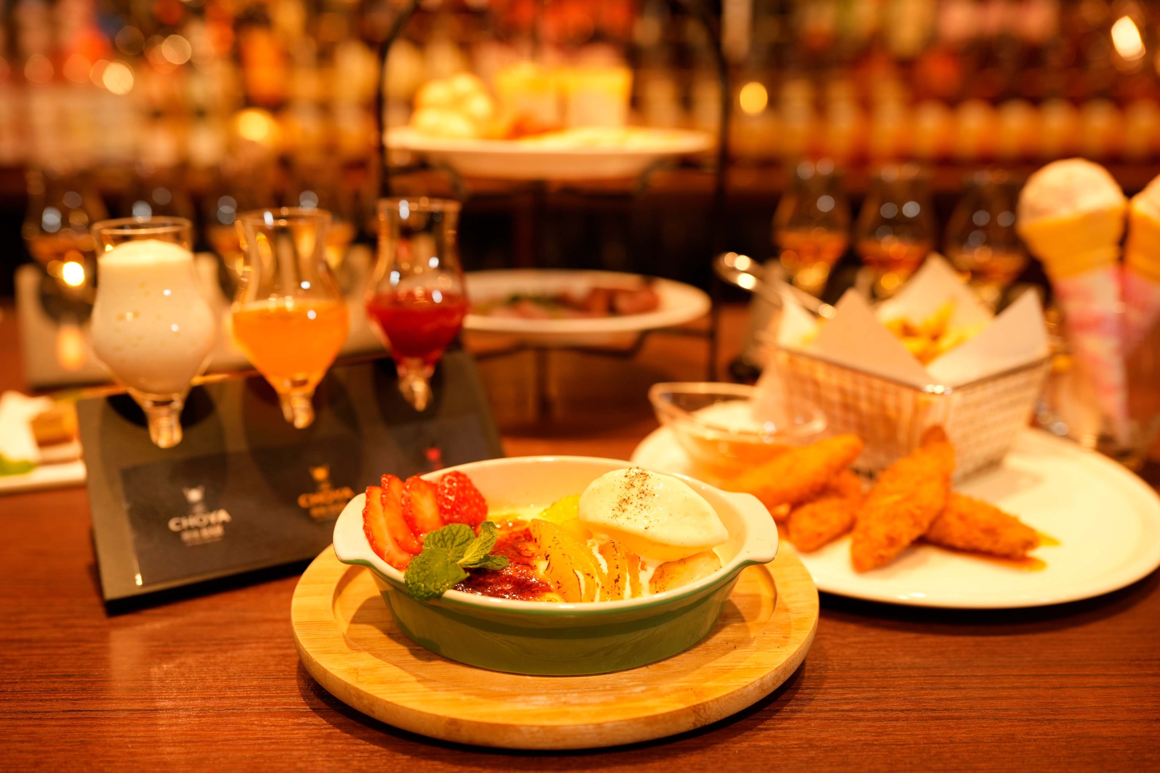 新作梅スイーツ「CHOYA とろける梅フルーツグラタン」は、アルコール入りの酔うタイプとノンアルコールの酔わないタイプからお選びいただけます。また、梅をアレンジしたフードや梅酒との相性を考えたオードブルやスイーツに、3~5種類の利き梅酒が楽しめるフライトセットや人気の梅酒カクテルにノンアルコール梅酒カクテルなど、100種類以上のドリンクが2時間30分飲み放題 (ラストオーダー30分前)の「梅づくしアフタヌーンティー&ハイティー」コースの選べるデザートとしてもお楽しみいただけます。コーヒーや紅茶などホットドリンクも飲み放題に含まれておりますので、大人カジュアルな空間でゆったりくつろぎながらお楽しみください。お友達やご家族との遅めのランチやくつろぎのカフェタイムとして、お買い物の休憩の場としてお気軽にお立ち寄りください。