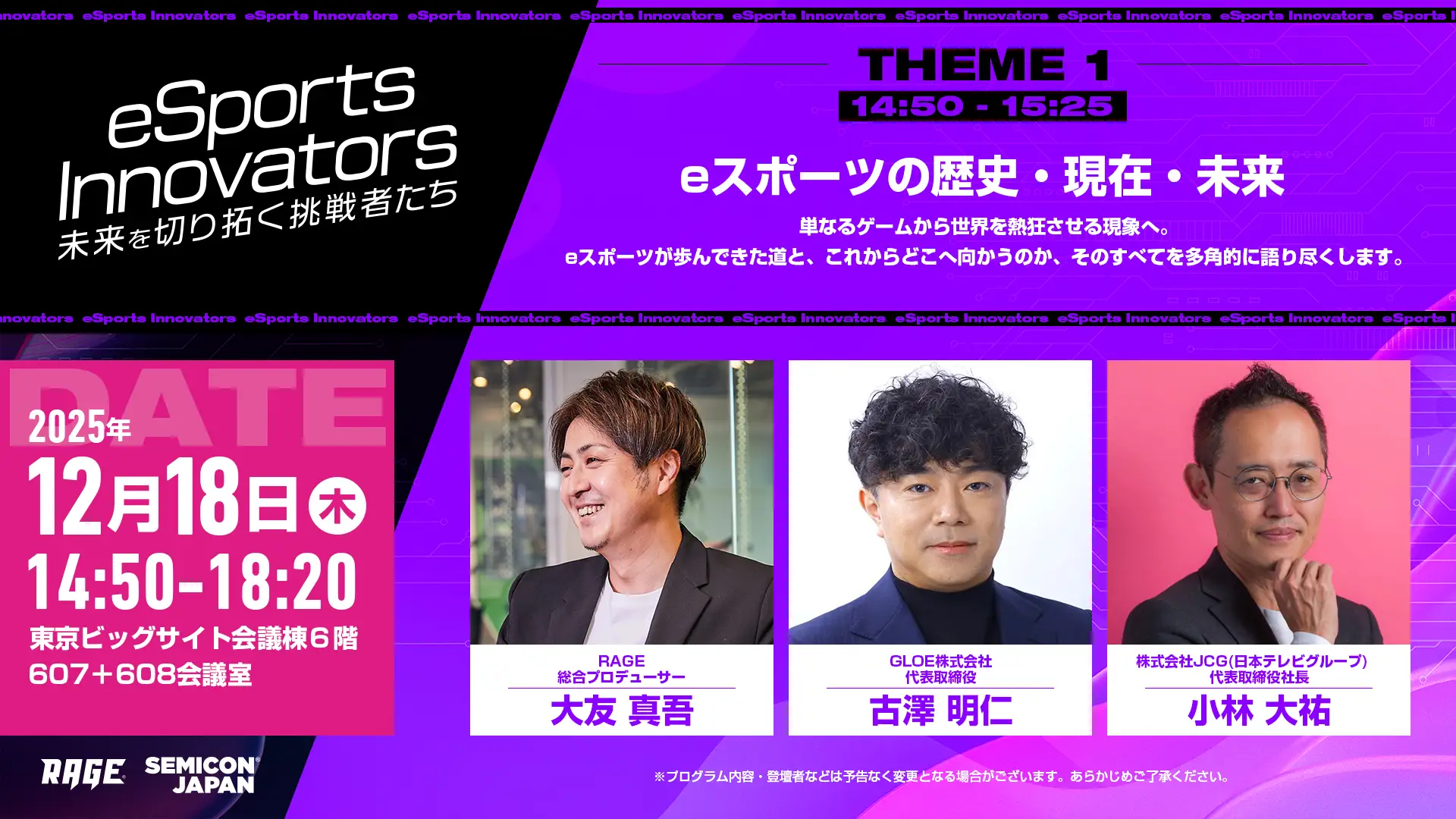 JCG代表取締役社長の小林が、SEMICON Japan 2025特別企画「eSports Innovators」に登壇