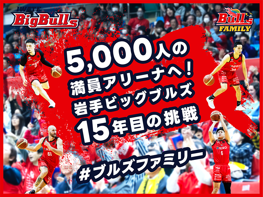 岩手ビッグブルズ、クラウドファンディング「5,000人の満員アリーナへ!岩手ビッグブルズ15年目の挑戦 #ブルズファミリー」をスポチュニティで実施予定!