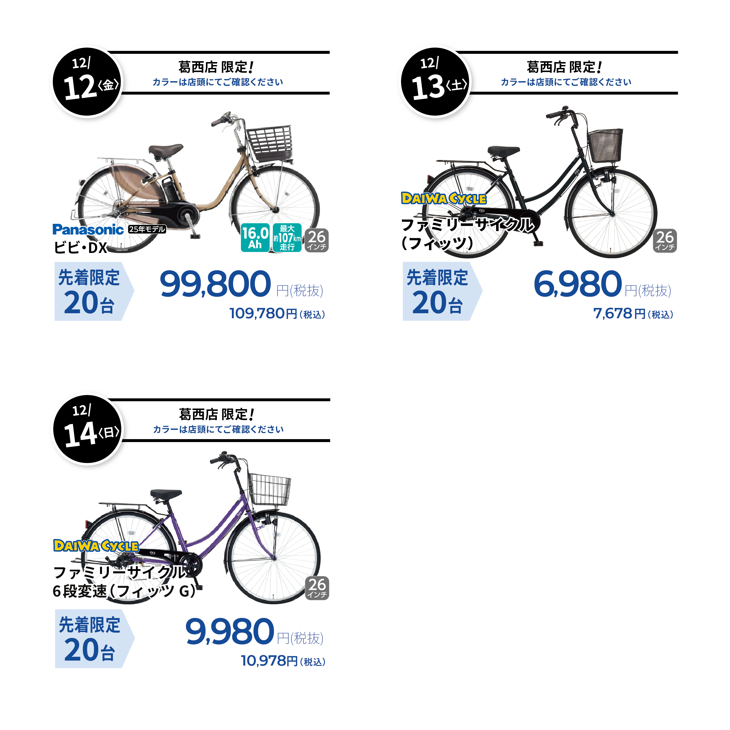 ~台数限定で自転車が7,678円!東小松川店、鹿骨店にて応援セール実施!~