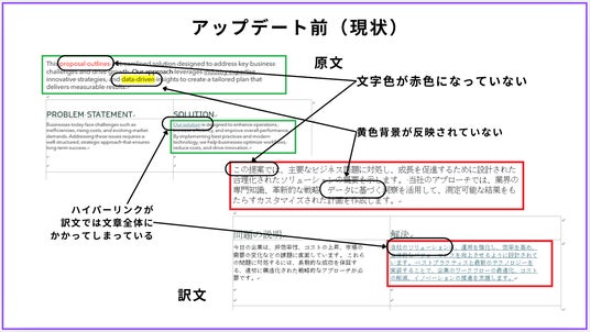 Word ファイル内のテキスト抽出および書式情報の解析処理を全面的に刷新しました。これにより、これまで保持が難しかったハイパーリンク、ハイライト、太字・斜体などの書式が、翻訳文ファイルでも正しく反映されるようになります。