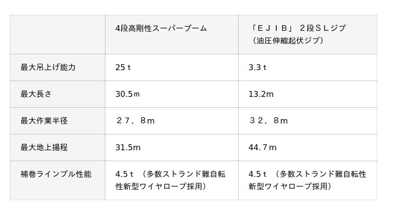 1.クレーン性能・操作性「EJIB」 2段SLジブ(油圧伸縮起伏ジブ) (新規標準搭載)
