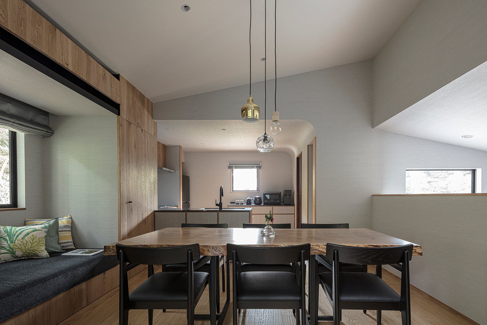 最大6名が集えるダイニングは、天井が高くキッチンとの一体感が心地よい開放的な空間。食事を囲む時間や語らいのひとときをより豊かにし、家族や仲間との上質な団らんが自然と育まれる場所です。
