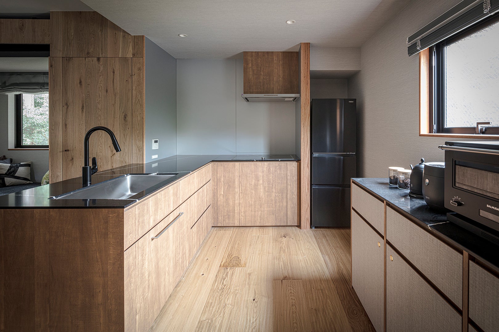 キッチンには、日常とはひと味違う料理を楽しめる上質な調理器具・カトラリー・食器類・調味料をご用意しました。自然素材をふんだんに取り入れた空間は、まるで "箱根に暮らすように滞在できる" 心地よさを実現しています。