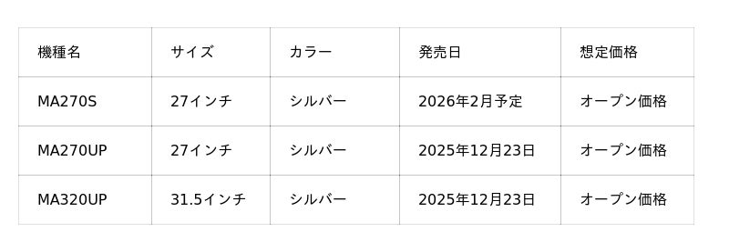 ニュースページリンク:https://www.benq.com/ja-jp/news/products/20251212-664-ma270s-ma270ua-ma320ua.html