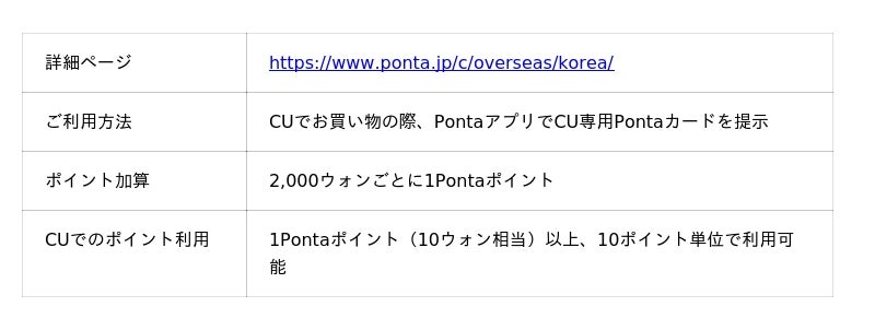 2025年12月12日、韓国の大手コンビニエンスストア「CU」でPontaポイントをためてつかえるサービス開始