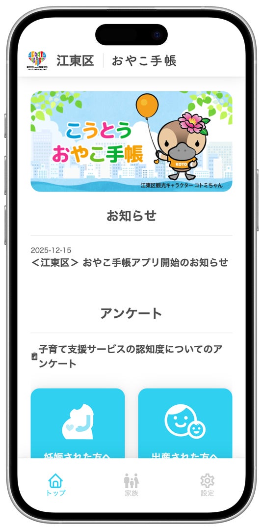 東京都 江東区では、2014年よりミラボが開発・提供する母子手帳アプリをベースとした「かんたん&べんり 予防接種ナビアプリ」を提供し、長きに渡り 子育て支援事業に取り組んでおります。この度、子育て情報にアクセスしやすくするために「かんたん&べんり 予防接種ナビアプリ」を「mila-e おやこ手帳」へリニューアルし、「こうとう おやこ手帳」として 新たに提供する運びとなりました。