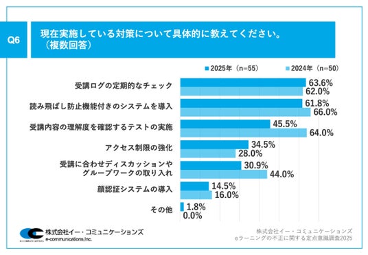 【定点】Q6. Q5で「対策を実施している」と回答した方にお聞きします。eラーニングの不正受講を防ぐために、現在実施している対策について具体的に教えてください。(複数回答)