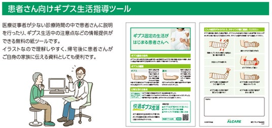 医師の働き方改革や医療従事者の人手不足が進む中、限られた診療時間で十分な生活指導を行うことが困難になっています。この状況の解決を支援するため、アルケアは製品に加え、医療従事者と患者さん双方の視点に寄り添った情報・サービスの提供を通じて、ギプス固定に関わる全ての方のトータルサポートを目指します。