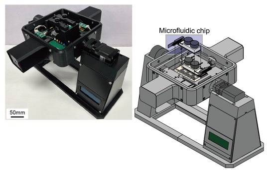 芝浦工業大学 生物微小流体工学研究室で開発されたマイクロ流体細胞培養系を搭載した3Dクリノスタット