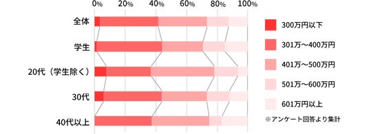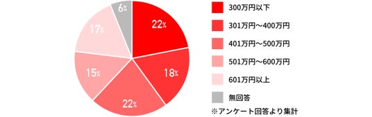 ・現年収では「300万円以下」と「401万~500万円」が最多で、希望の年収は「301万~400万円」が最多となり、前年同様に現年収を踏まえた堅実な希望年収となった。