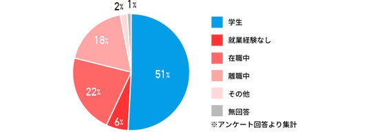 就業状況:学生154名、就業経験なし19名、在職中67名、離職中55名、その他5名、無回答3名