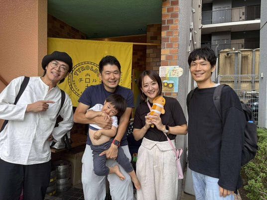 (公私の垣根を越え、交流を深める吉田田タカシ氏と、代表の橋本と家族たち)