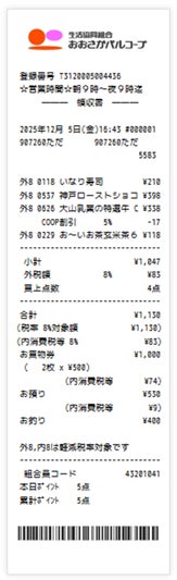 株式会社ログノート(東京都港区:以下「ログノート」 代表取締役社長 高津祐一)は、POS連動型電子レシートプラットフォーム「iReceipt」(アイレシート)を2025年12月15日より、大阪府で組合員数45万989名を有する生活協同組合おおさかパルコープ(大阪府大阪市:以下「おおさかパルコープ」 理事長 奥井和久)へ提供し、全店舗での電子レシートの運用を開始することをお知らせいたします。紙レシート発行の抑制など、キャッシュレス社会や環境負荷に配慮した店舗運営に貢献することはもとより、おおさかパルコープが組合員様に提供するスマートフォンアプリ「パルコープアプリ」を通じて、組合員様自身のスマートフォンで電子レシートを受取り、電子帳簿保存法に則った領収書としてご活用いただける環境を提供してまいります。