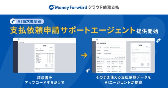 株式会社マネーフォワードは、『マネーフォワード クラウド債務支払』において、支払依頼データを自動で提案するAIエージェント「支払依頼申請サポートエージェント」の提供を開始します。本機能により、請求書処理における情報の転記や修正作業を自動化し、手入力を大幅に削減、経理部門のさらなる業務効率化を実現します。
