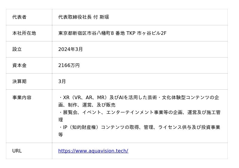 【Aqua Vision株式会社 会社概要】