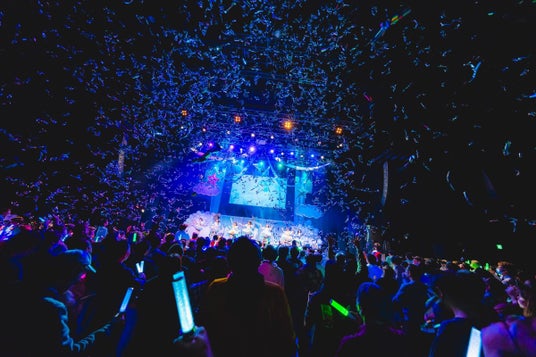 終演間際、テープキャノンが舞う中で披露されたライブシーン。