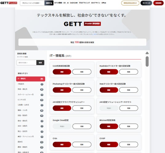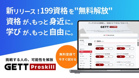 資格取得のための無料プラットフォーム「GETT Proskill 資格解放」をリリース
