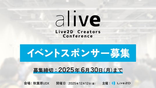 2Dイラストに立体的なアニメーションを加える表現技術「Live2D(ライブツーディー)」の研究開発を中心に事業を展開している株式会社Live2D(本社:東京都新宿区、代表取締役:中城哲也、以下、Live2D社)は、2025年3月24日(月)よりカンファレンスイベント『alive 2025』のイベントスポンサーの募集を開始いたします。