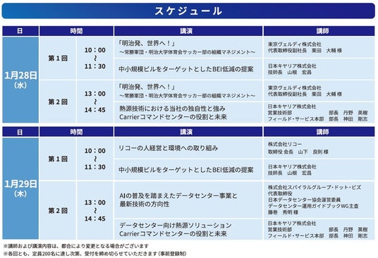 なお、会期中には特別セミナーを開催し、業界の最新動向や事例紹介、AI・IoTを活用した次世代ソリューションなど、未来志向の情報発信を行います。また、特別講演には、東京ヴェルディ株式会社から栗田大輔様(代表取締役副社長)、株式会社リコーから山下良則様(取締役会長)、日本データセンター協会から藤巻秀明様(株式会社スパイラルグループ・ドット・ビズ代表取締役、日本データセンター協会運営委員)と各界でご活躍のゲストをお招きし、業界第一線の視点から貴重なお話を披露していただきます。