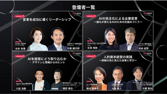 LINEヤフー株式会社代表取締役会長の川邊健太郎氏をはじめとしたAI・経営改革・人的資本領域を牽引する経営者・有識者に登壇いただきました。
