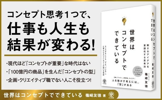アイデア・企画・プレゼンを改善するコツが詰まった「コンセプトの型」を豊富な実例とともに解説。売上100億円のヒット商品を生んだクリエイターボックス代表 篠崎友徳が初の著書刊行。