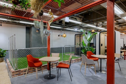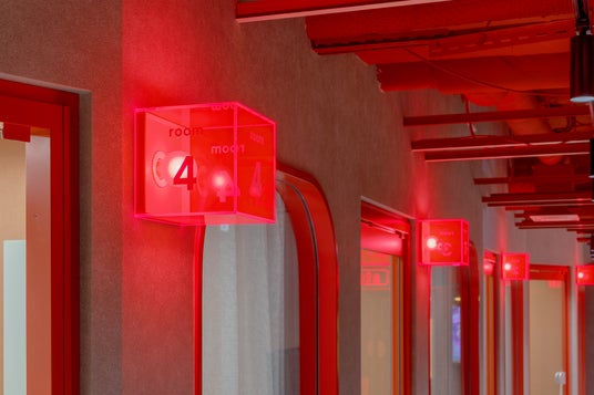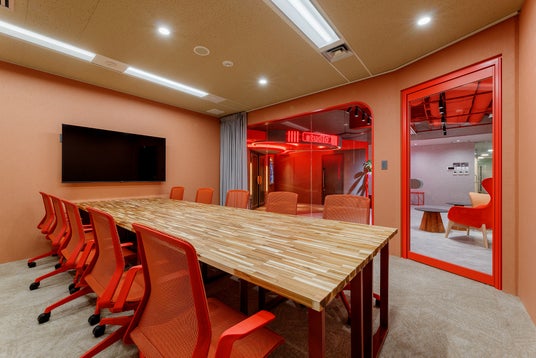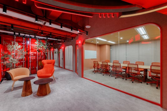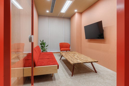新オフィスには、オーディションや衣装合わせ・試写などを行うことを想定した「Studio」をはじめとして、コーポレートカラーを基調とした会議スペースを設ける一方で、様々なワークスタイルに応じることのできる執務スペースを備えました。
