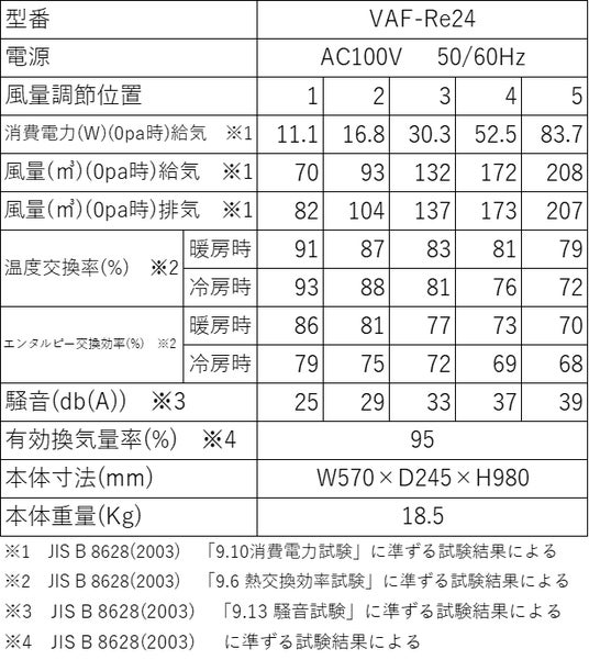 VAF-Re24 スペック表