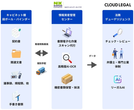 生成AI搭載の企業法務ALSP「クラウドリーガル」とNXワンビシアーカイブズの書類電子化サービス「WAN-Scan」・「AI-OCR×BPO」が法務デューデリジェンス分野で連携