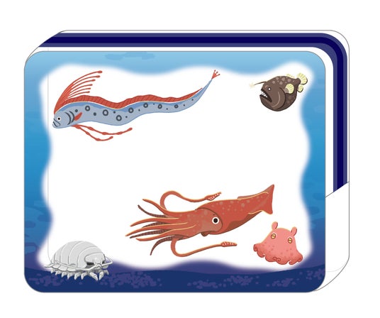 深海の世界をイメージしたクリアポーチで、5種類の生物が描かれています。