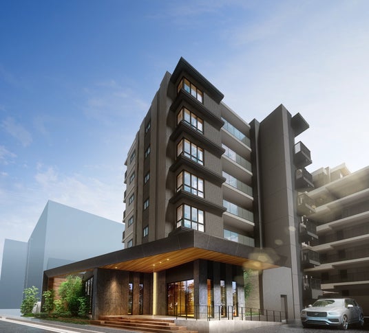 ※掲載の完成予想CGは、計画段階の図面を基に描き起こしたもので、形状・色彩・外構・植栽等は実際とは異なります。形状の細部・設備機器・配管等は簡略化の上、表現しております。今後、行政指導・施工上の理由等により、計画に変更が生じる場合があります。樹木・植栽は、特定の季節やご入居時の状態を想定して描かれたものではありません。実際に植樹する樹形・枝ぶり・葉や色合い等が異なる場合があります。尚、竣工時には完成予想CG程度には成長しておりません。周辺の建物、電柱、電線、ガードレール等は簡略化して表現しています。