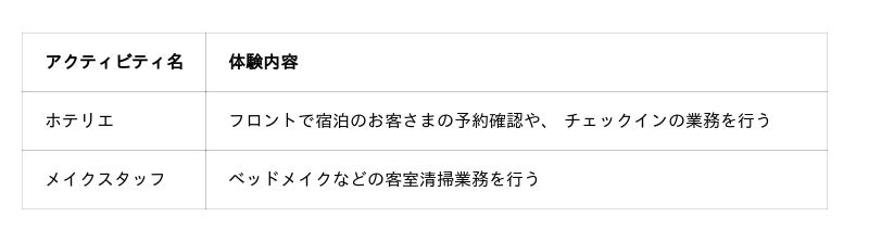 このようにホテルの仕事はお客さまの笑顔とともにチームを感じることができる、素敵な仕事だと思います。ホテルは感動をつくる場所であり、私たちは想像を超えた感動から、ありがとうと言われる「おもてなし」を目指しています。「ホテル」パビリオンでの体験を通じて、お客さまやチームである仲間の笑顔を想像する、そんな想像力、そしてありがとうと言ってもらえる喜びを育んでもらえたらと思っております。